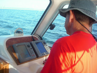 ... onde me atiro à sondagem, procurando o ponto mais quente para fundear ou consulto o GPS, para ver qual a melhor deriva para mandar chumbo colorido lá para baixo e animá-lo até à exaustão.