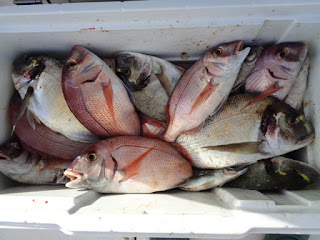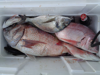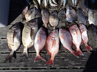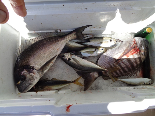 Uns quantos sargos legítimos e um ou dois pargos mais pequenos, compuseram o ramalhete, em dia calmo, sem pressas e algum peixe.