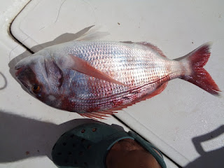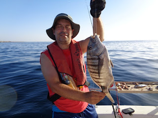 Certo é que, após esta captura e durante mais umas 3 horas de pesca, usando a mesma técnica - chumbadinha - só uma meia dúzia de sargos legítimos, de tamanhos consideráveis colaboraram. As sardinhas inteiras e cavalas frescas, atadas com fio de silicone, iam sendo consumidas, mas pargos maiores, nem mais um. Porquê? Não faço ideia!?
