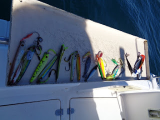 Uma pequena aguagem, quase imperceptível usando chumbadas de 120g, fez-me pensar que talvez pescando à chumbadinha fora da zona por baixo do barco, e mais alto na coluna de água, algo  melhor poderia ser enganado, antes que os gaiatos engodados chegassem à isca.